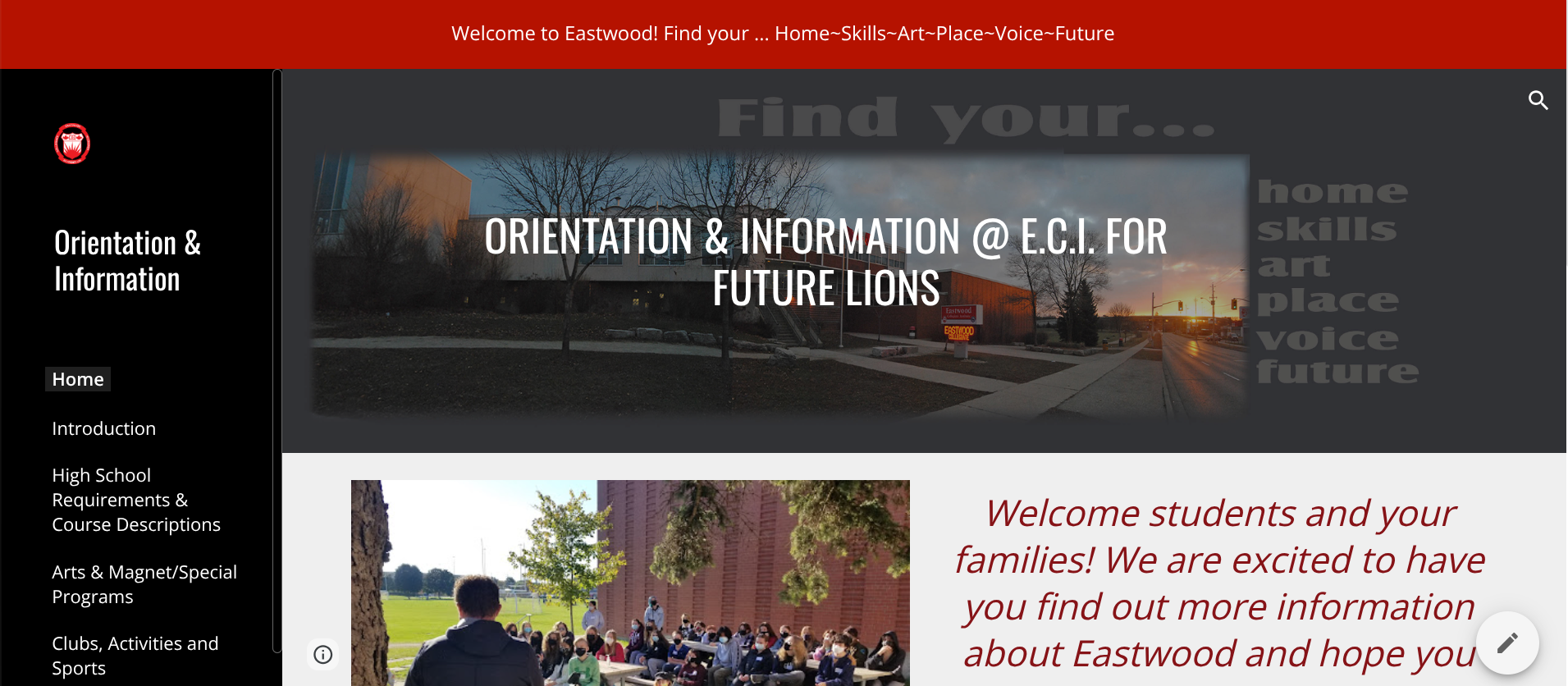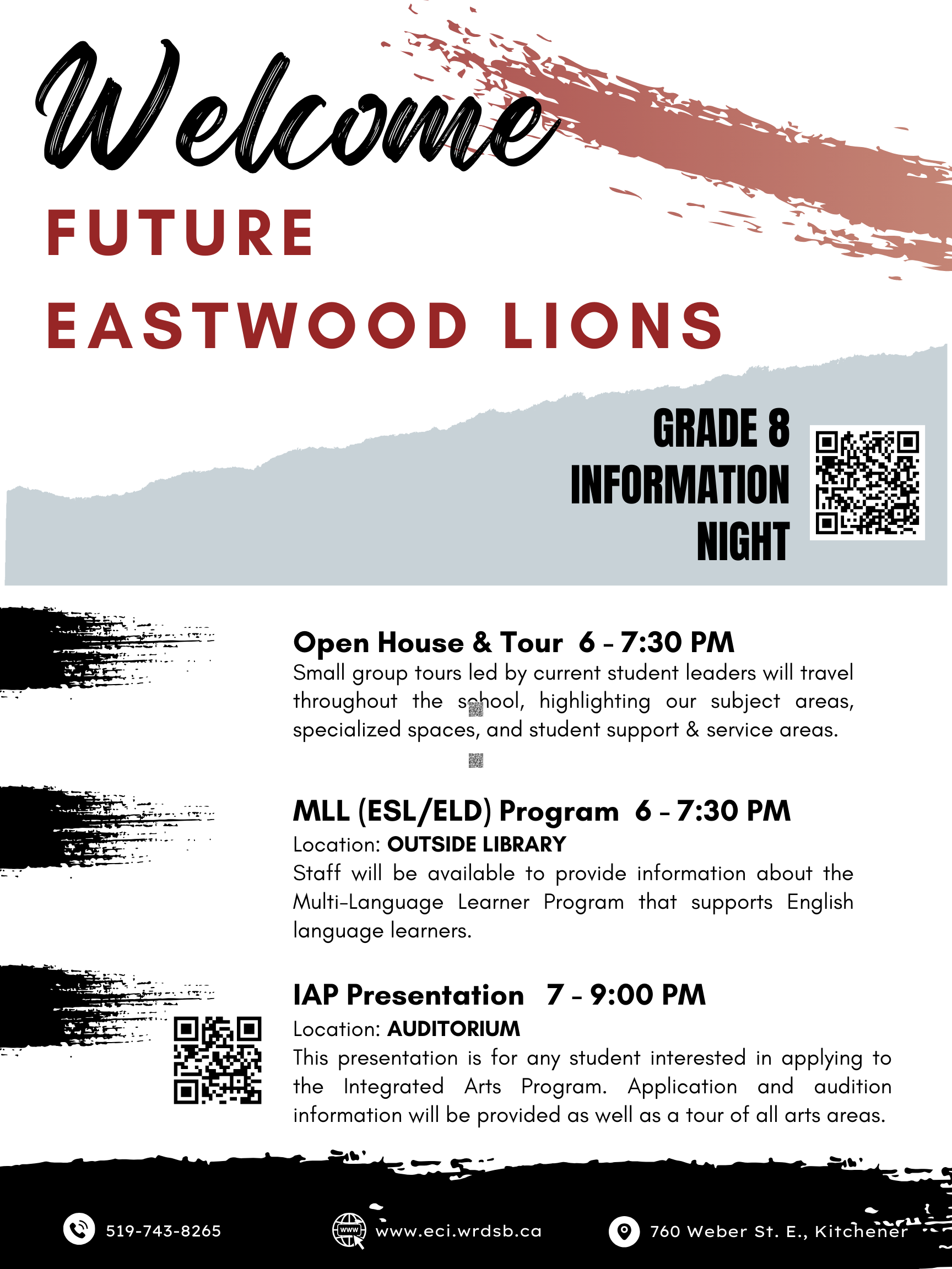 Incoming and potential grade 9 students and their families/caregivers are welcome to visit to Eastwood on Thursday, December 4, 2025, from 6:00 to 9:00 p.m. to tour the school and learn about our great programs! Student leaders will be available to welcome and tour students.